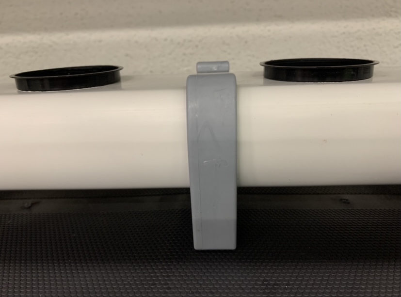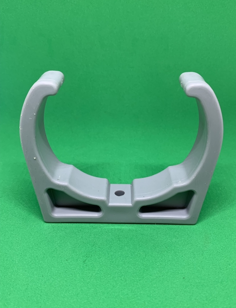 Abrazadera de polipropileno para tubería Hidroponico perforado de 80mm para aplicación en líneas de producción.