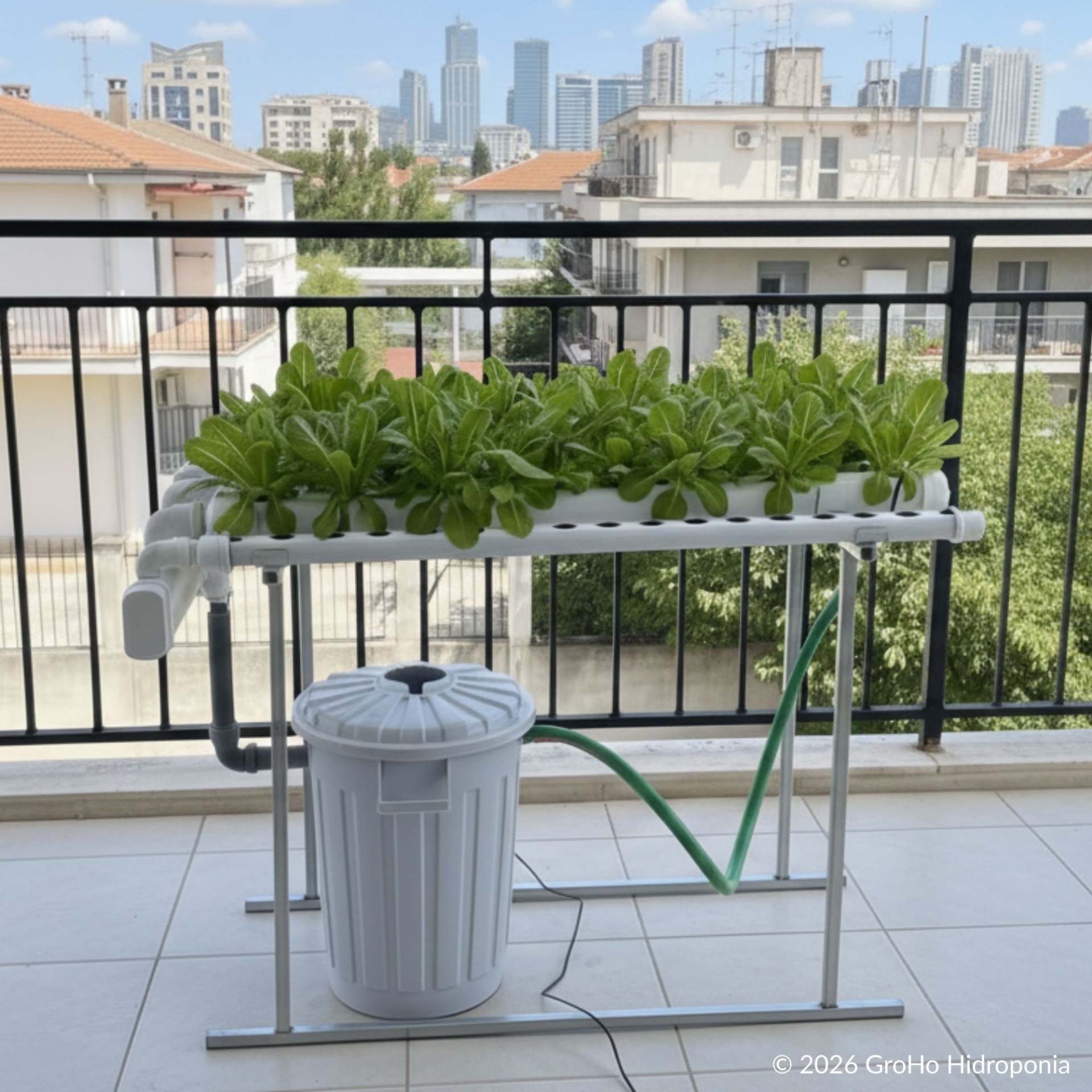 Solución ideal para tener en casa en el balcón, terraza o patio trasero. Este kit permite el cultivo de cerca de 40 plantas (25 crecimiento + 15 vivero) y puede ser utilizado para lechugas, rúculas, fresa, salsa, cilantro, berro, entre otros.