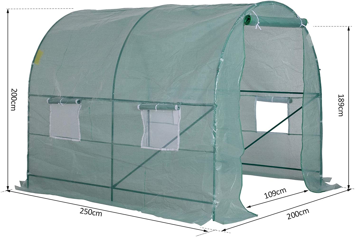 - Dimensiones: 250 x 200 x 200 cm; estructura tubular: Ø 19 mm; medidas ventana: 40x40 cm