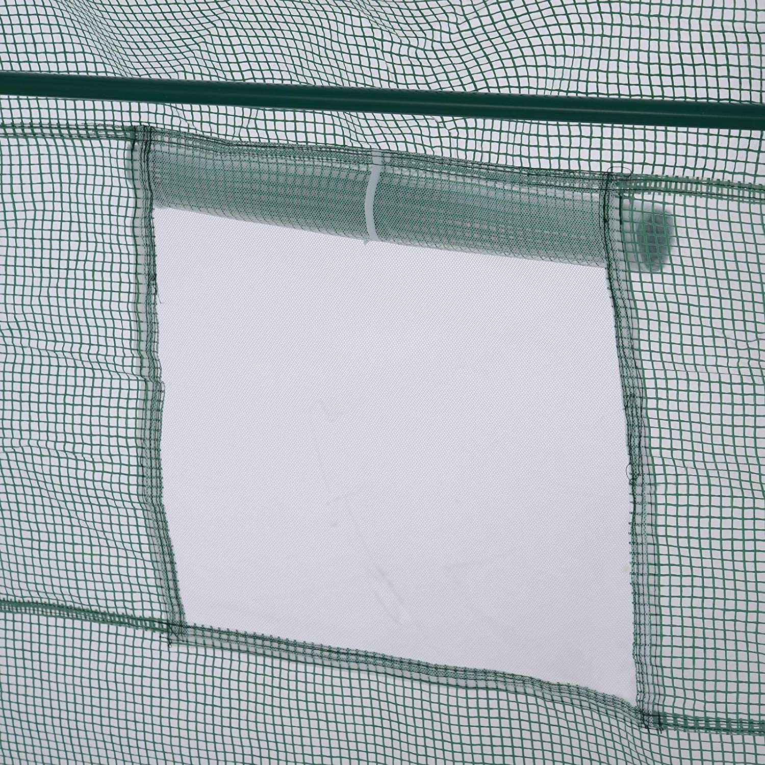 - Tejido PE resistente a los rayos ultravioleta y al desgarro (polietileno 140 g / m²); el plástico es muy duradero y resistente a las heladas; limpieza fácil y rápida
