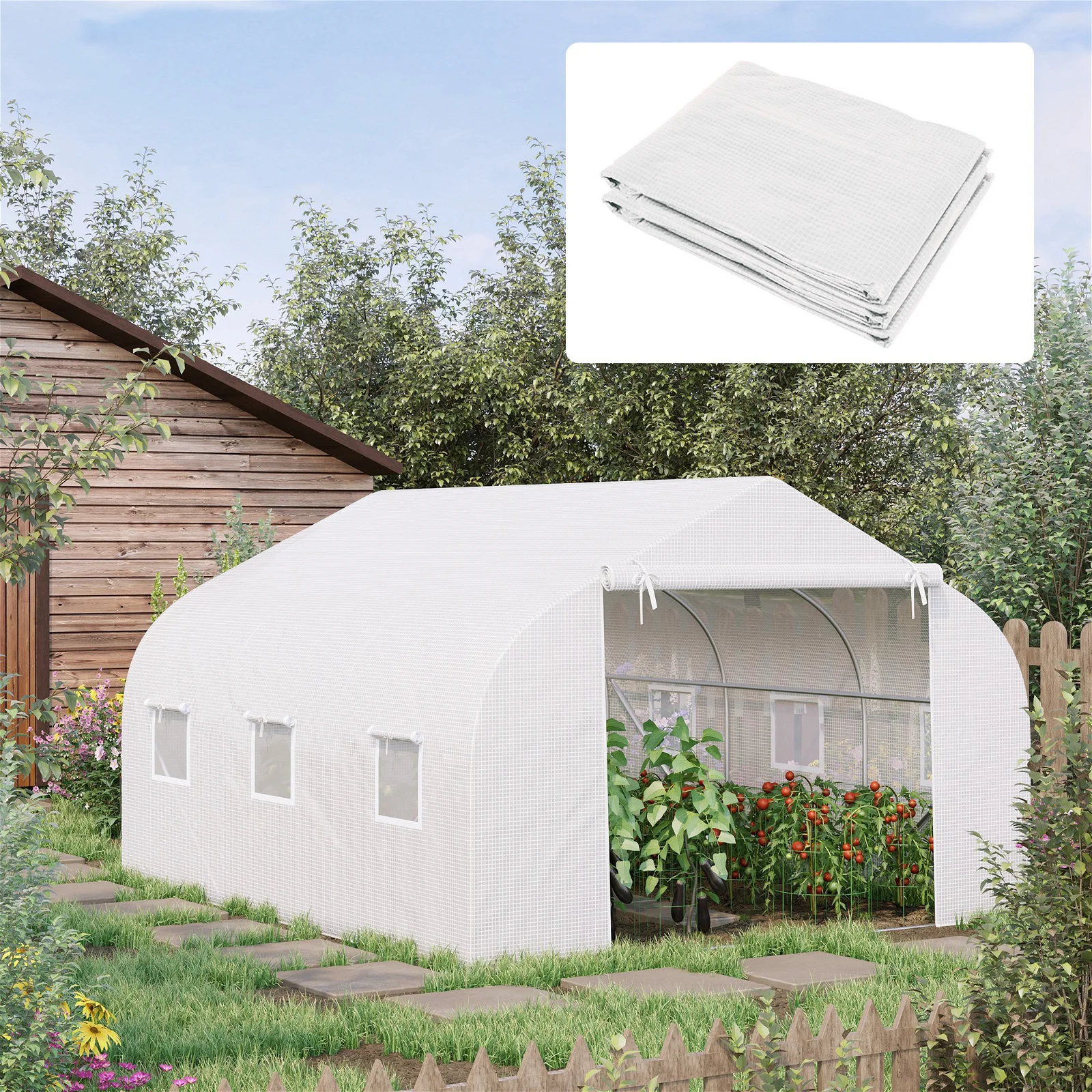Para un invernadero tipo túnel, este es el reemplazo de cubierta perfecto para darle una segunda vida a su invernadero. Esta cubierta de invernadero está hecha de malla de PE y tiene 12 ventanas de ventilación, 6 en cada lado. Su puerta enrollable también proporcionará una buena ventilación y un fácil acceso al interior. ¡Dale una segunda oportunidad a tu invernadero y a tus plantas!