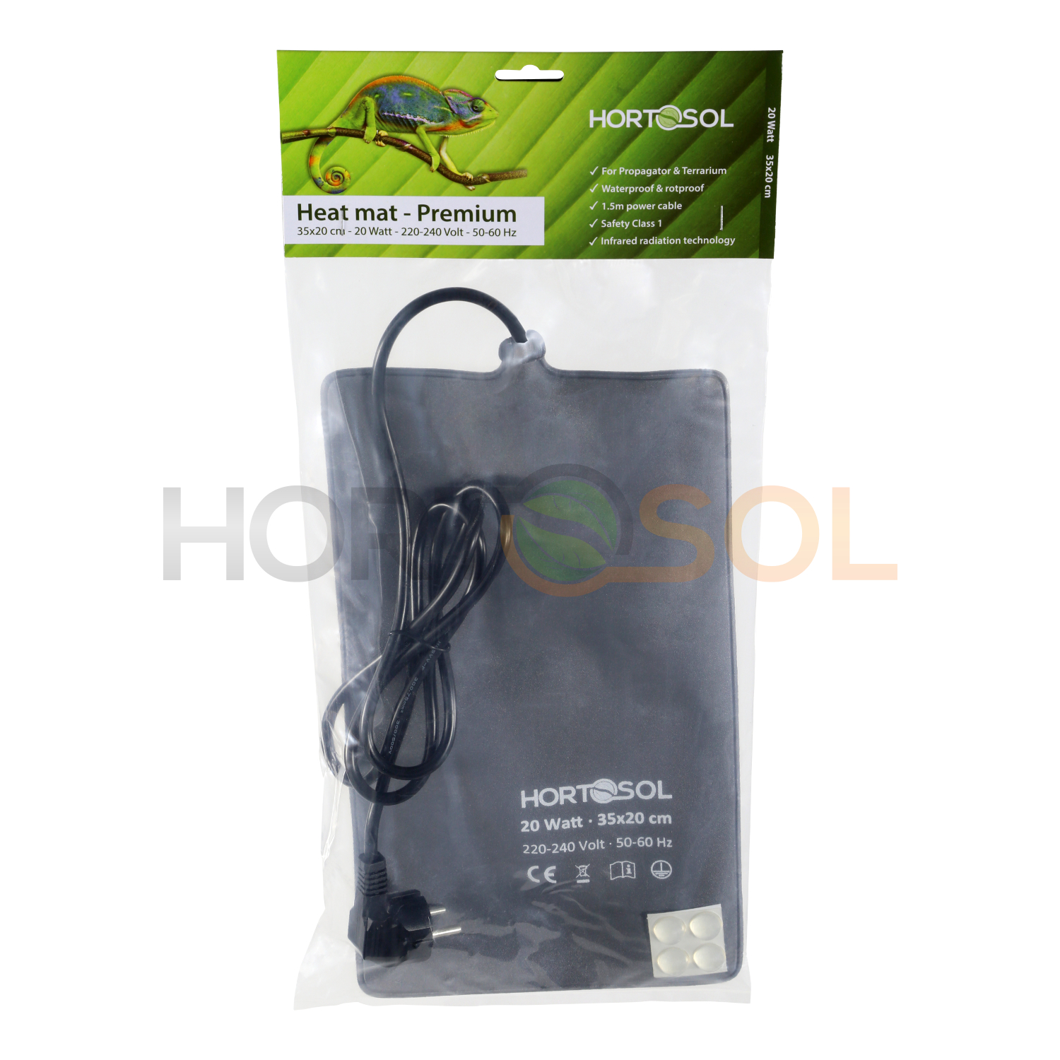 Este tapete Premium Heat fue desarrollado especialmente para su uso con propagadores y terrarios y utiliza tecnología de radiación infrarroja de onda larga. Esto simula el calor de la luz solar natural y sobre todo calienta los objetos. Así, debido a la radiación térmica indirecta, sólo se produce un pequeño aumento de la temperatura ambiente, lo que tiene el efecto positivo de una humedad relativa casi constante. Para cumplir con los altos requisitos, la manta térmica está completamente cubierta con un conductor protector y está hecha de PVC resistente al agua y a la corrosión.