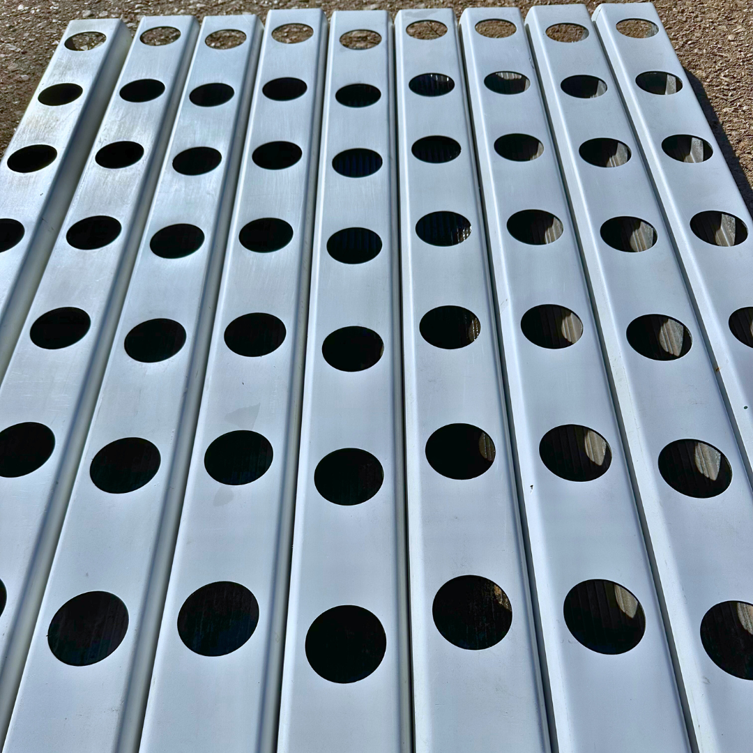 Perfil Hidropónico Perforado de 80mm en segunda mano para aplicación en líneas de producción.